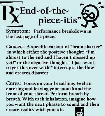 Musical Infirmary Common physical, mental and musical ailments affecting performance and practice; their symptoms, causes, suggested cures and preventative prescriptions. | ||||||||